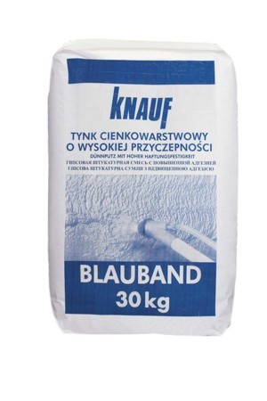 Jeśli wybudowaliśmy dom z elementów prefabrykowanych, stanowiących w miarę równe podłoże możemy zamiast tynków MP 75 lub MP 75L wybrać cienkowarstwowy tynk KNAUF Blauband, którego ogromną zaletą jest wydajność. Wystarczy bowiem nałożyć jedną warstwę o zaledwie min. 2 mm grubości, aby mieć już otynkowane ściany oraz sufity. Blauband można nakładać maszynowo, ale także ręcznie.