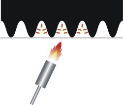 usunięcie folii antyadhezyjnej, która jest ogrzewana przez płomień