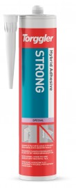 Klej Hybrid Adhesive STRONG to uniwersalny materiał do klejenia różnych chłonnych i niechłonnych materiałów budowlanych jak beton, cegła, powierzchnie emaliowane i ceramiczne, szyby szklane, lustra, PCW, twarde tworzywa sztuczne (HPL), metale (miedź, cynk, aluminium, stopy metali, stal nierdzewna), płyty gipsowo-kartonowe, płyty cementowo-wiórowe i drewniane. Produkt ten nie wymaga stosowania podparć montażowych na czas wiązania kleju, wykazuje przyczepność również w warunkach wysokiej wilgotności, nie kurczy się, nie pęcznieje w czasie wiązania, a po związaniu charakteryzuje się wysokim modułem sprężystości. Można go stosować na wilgotnych podłożach, a także na podłożach narażonych na wibracje. Nie zawiera izocyjanianów, rozpuszczalników i silikonów, nie wywołuje korozji metali, nie ma nieprzyjemnego zapachu. Związany materiał można malować.