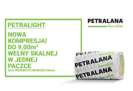 PETRALIGHT to produkt, który dzięki swoim parametrom zdobył uznanie na rynku. Klienci docenili ten materiał izolacyjny za bardzo dobrą termoizolacyjność połączoną z trwałością, izolacyjnością ogniową oraz zdolnością do pochłaniania dźwięków. Opracowane na początku roku 2019, przez specjalistów PETRALANA SA, zmiany w technologii sposobu pakowania, pozwoliły znacznie poprawić wskaźnik kompresji dla tego produktu.