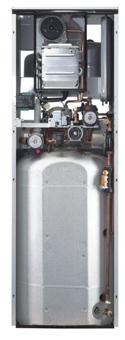 Kocioł ECONCEPT SOLAR ST ze 180 litrowym warstwowym zasobnikiem przystosowany do bezpośredniej współpracy z panelami solarnymi.