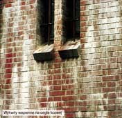 Poważnym jednak problemem rzutującym na rynkowe opinie o elewacjach klinkierowych jest zjawisko pojawiających się po pewnym czasie różnego rodzaju wykwitów i przebarwień na ich powierzchniach. Zjawiska tego typu należą do najczęstszych szkód jakie możemy zaobserwować na wielu obiektach. Mechanizm powstawania zaplamień we wszystkich przypadkach jest bardzo podobny, natomiast przyczyn jest bardzo wiele. Z wielu przeprowadzonych badań wynika, że około 35% wszystkich wykwitów powierzchniowych powstaje w wyniku zastosowania niewłaściwych zapraw, około 25% związane jest z wykonaniem robót bez zabezpieczeń w złych warunkach atmosferycznych (deszcz, mróz), około 25% w wyniku niestaranności podczas wykonywania prac i około 15% z innych przyczyn.